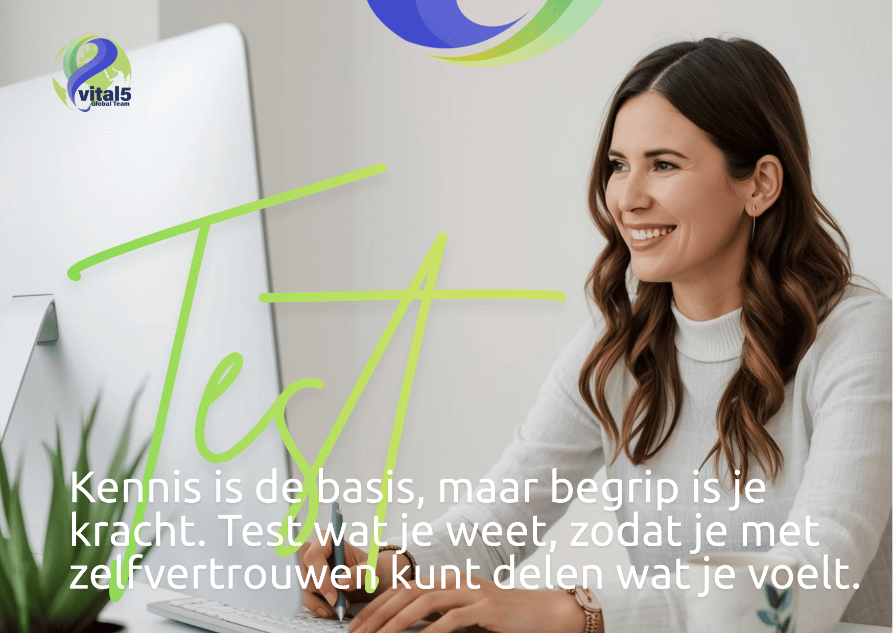 Jouw actie: Test jouw kennis en volg de aanwijzing in de test. Samen met jouw sponsor en/of Upline Manager kijk je kort naar jouw voortgang en krijg je toegang tot