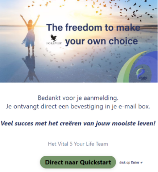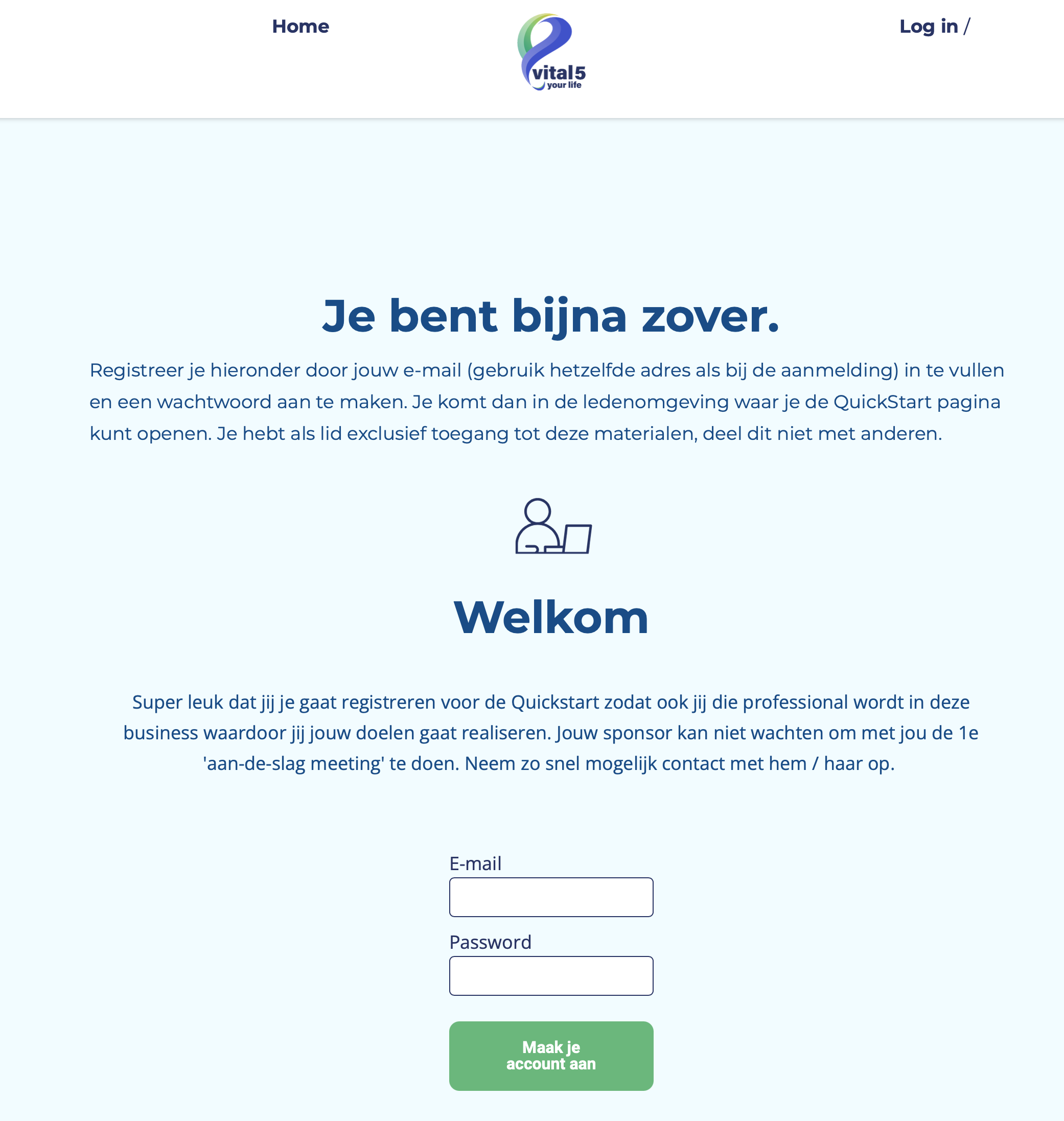 LET OP: na aanmelding ontvang je ook een e-mail dat je aanmelding is gelukt. Heb je geen bevestiging gekregen, neem dan contact op via join@thevitalfive.world.